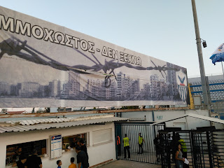 Next hard bit was getting a ticket, never going to be a full house but because of crowd trouble (as witnessed the week earlier in the same ground at the Apollon- Aberdeen game). In the end I managed to get a ticket from the Cyprus FA - the only way to get a ticket for fans of both teams, leading to a crowd of just over 1,000.